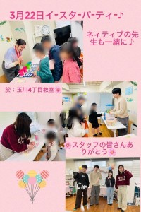 3月22日(日)玉川4丁目教室で、ネィティブの先生と一緒に、イースターパーティを2部制で行いました。